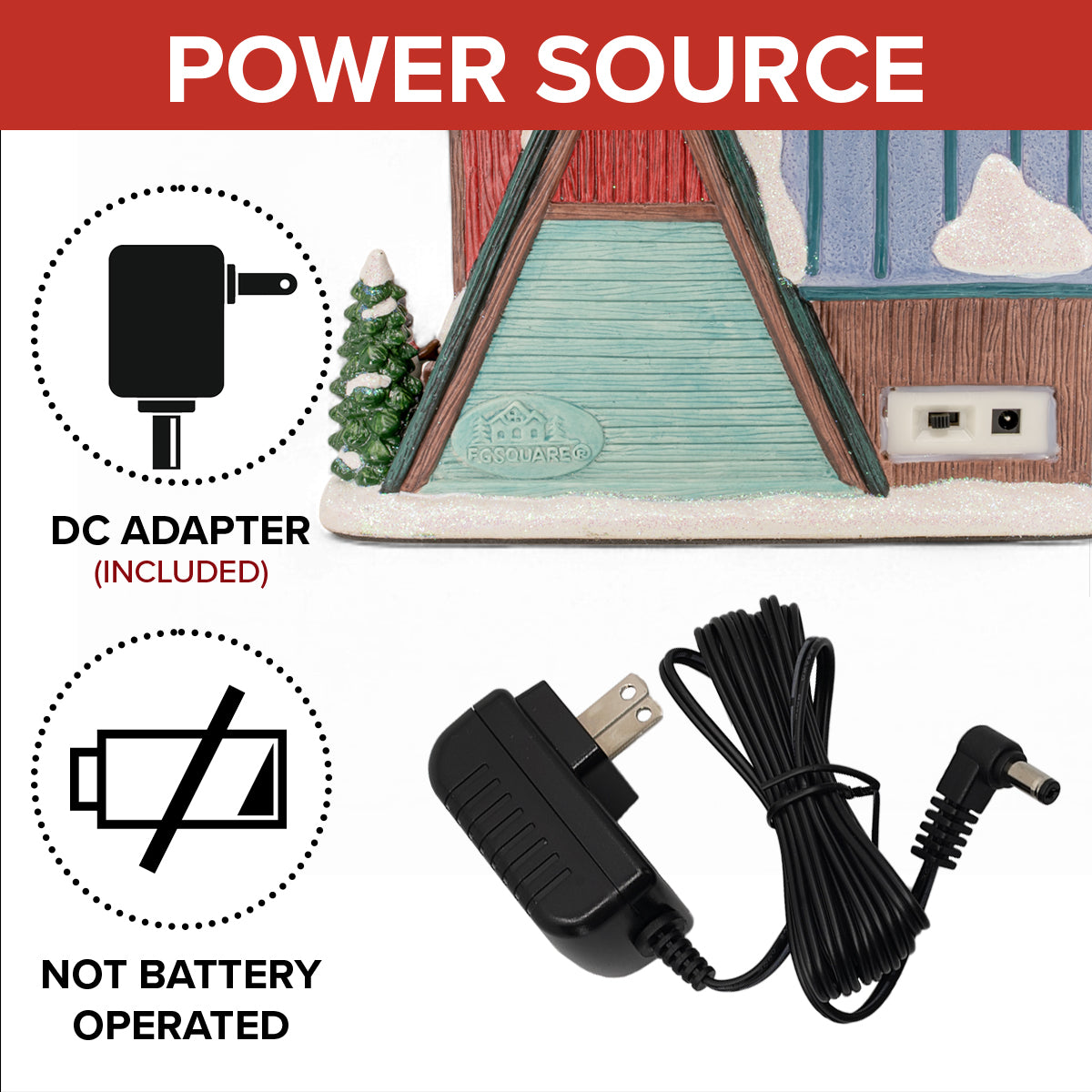 Rustic porcelain Country Log Cabin lighted Christmas village building with warm LED glow and snowy details. New 2025 cabin for winter village collectors.
