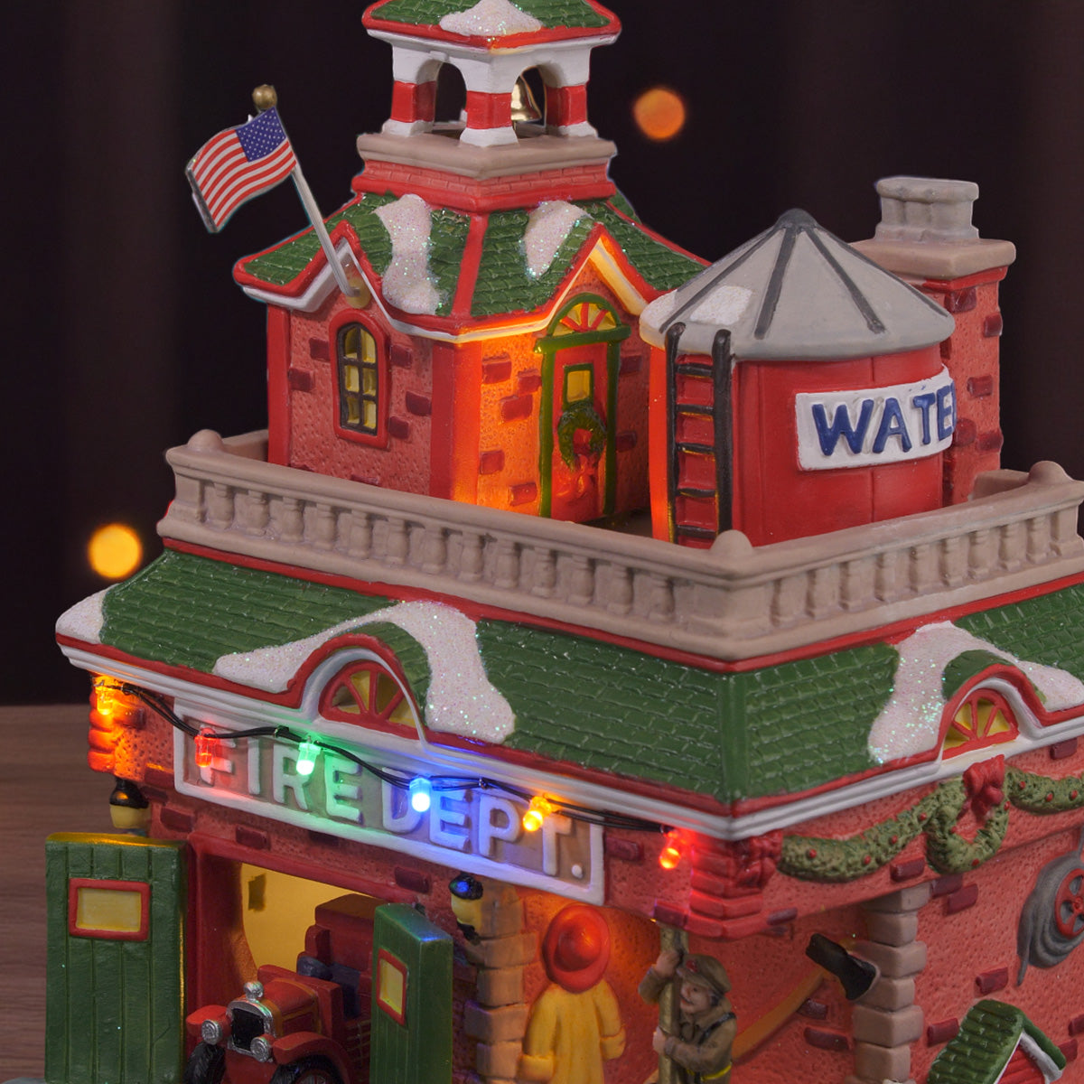 Warm LED Lighting – Illuminates the firehouse with a cozy, welcoming glow.